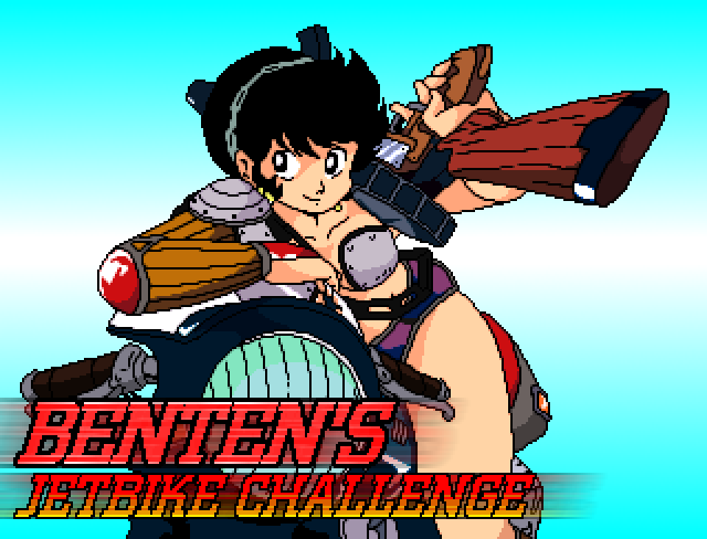 The next title was a horizontal shoot 'em up featuring jetbike rider and all round weapons fanatic Benten. I mocked up some simple parallax in The Games Factory, which looked quite good, but it never got further than that. The backdrops were grabbed straight from the anime. |