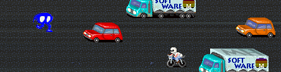 A Pac-Man variant. I drew all the between-level images and worked on the manual artwork (pencils by Acadia, touchup and colouring by me). |